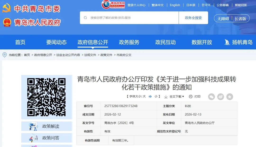 近日,青岛市人民政府办公厅发布关于印发《关于进一步加强科技成果转化若干政策措施》(以下简称《若干政策措施》)的通知。