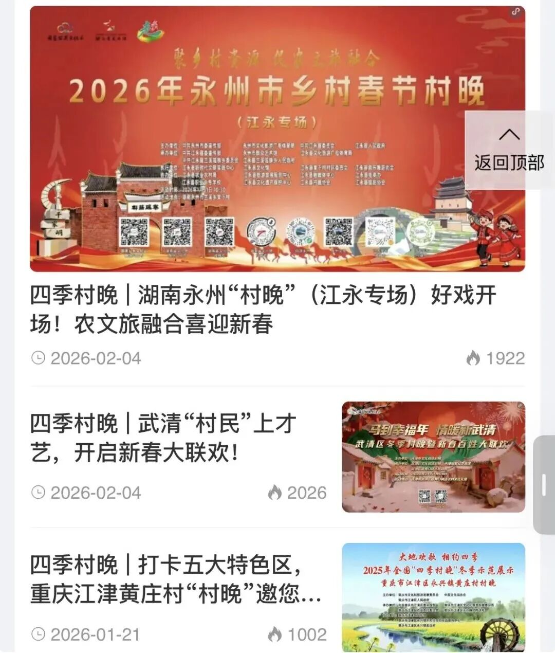 让您及时了解全国各地的“村晚”近况