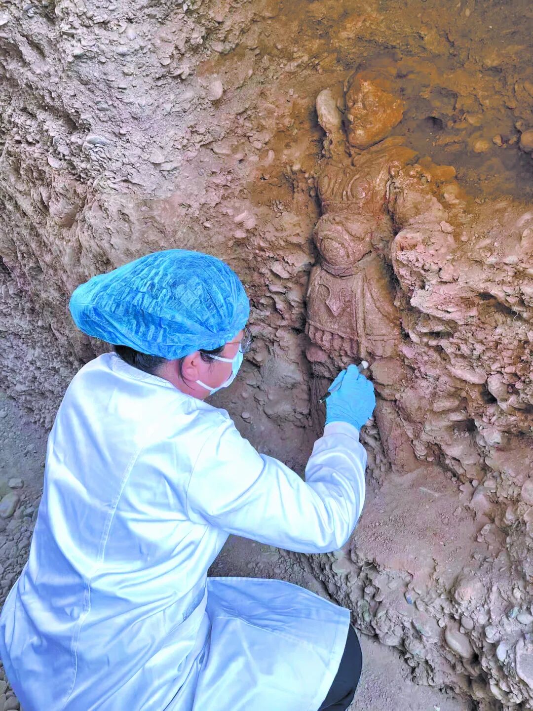 2025年,在对库车友谊路墓群进行第五次考古发掘时,唐代尹公墓(M138)的发现,同样出乎意料。尹公墓是目前南疆地区唯一一座唐代砖室墓,也是首次发现墓志和武士泥俑的墓葬,填补了龟兹地区唐代中后期安西都护府官员墓葬的考古空白。据新疆维吾尔自治区文物考古研究所研究馆员阿里甫江·尼亚孜介绍,墓志记述志主在唐安西四镇的两个官职——“支度判官”和“侍御史”,最后职官“安西副都护”。尹公卒于“贞元七年”,是此时安西都护府仍在正常工作的铁证。另记述尹公“迁厝于都护府城东乌垒原”,该墓位于龟兹故城东100米,证实了现在的龟兹故城是唐代安西都护府故址。
