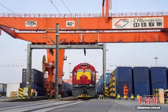 2月13日,一列满载55柜四川长虹家电的“熊猫号”中欧班列,从成都国际铁路港鸣笛启程,带着“四川造”的匠心与新春祝福,经霍尔果斯口岸出境后奔赴欧洲地区。