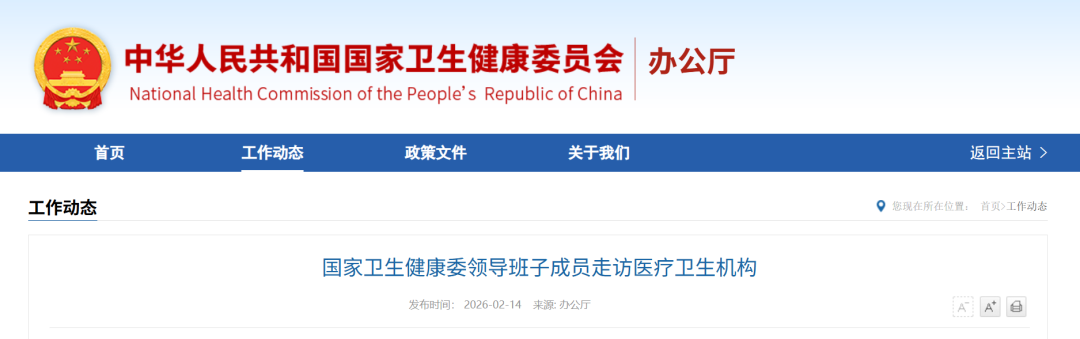 新春来临之际,国家卫生健康委领导班子成员分别走访在京医疗卫生机构,亲切看望慰问坚守一线的医疗卫生工作者,对他们的辛勤付出表示衷心感谢,并向全系统广大干部职工致以诚挚的新春祝福。