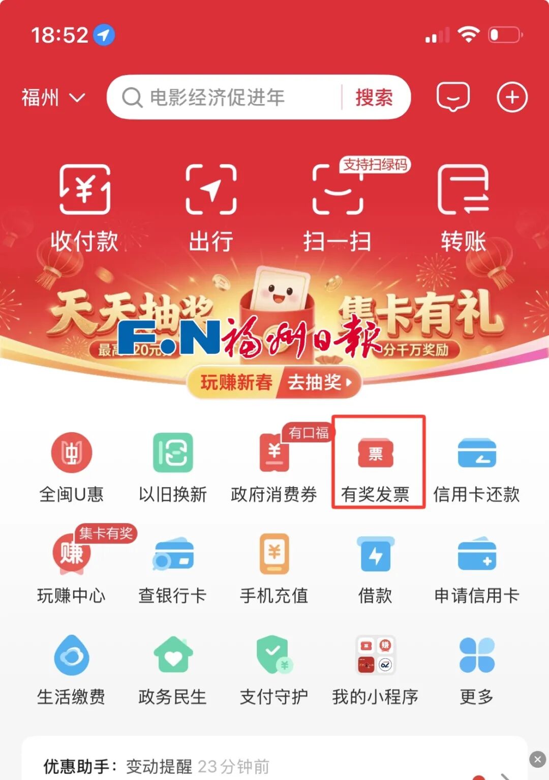 首页找到“有奖发票”入口