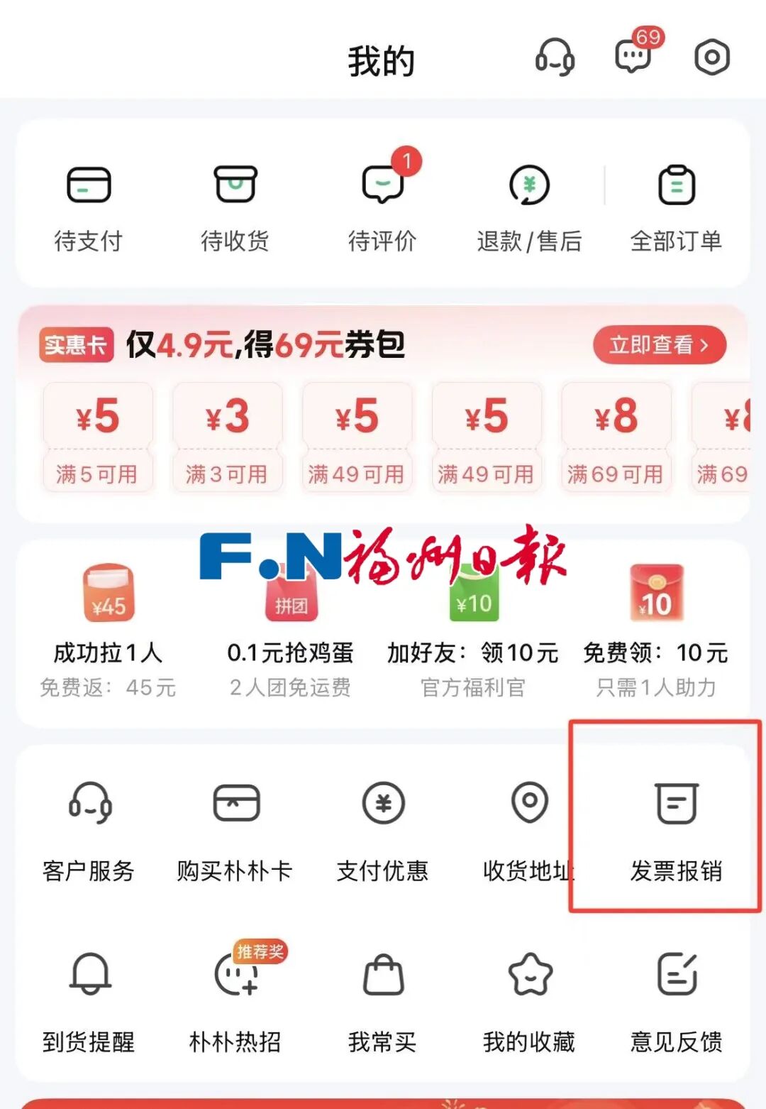 找到“发票报销”入口