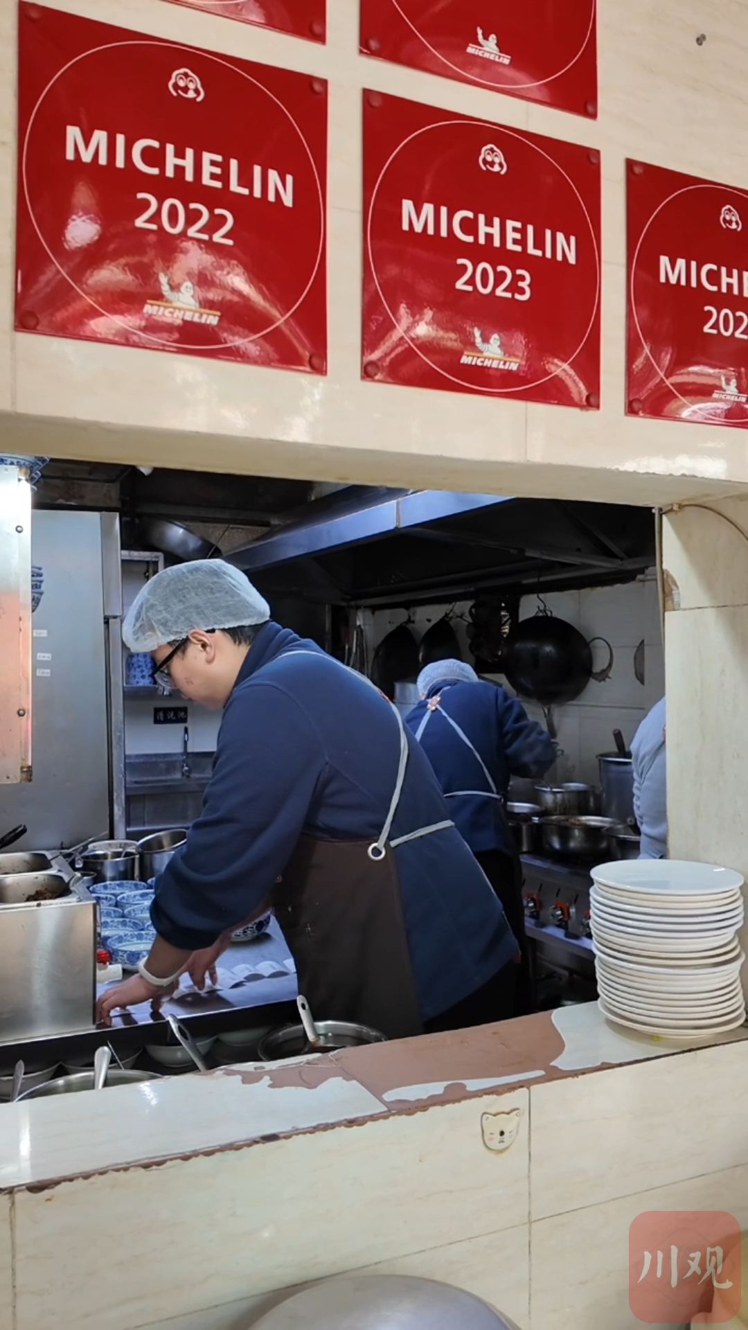 店面不大,一米见方的小桌,从店内摆到店外,一个中午18张小桌能翻3次台。这家开了十年的小店,始终坚守老成都味道,已连续五年入选米其林必比登推介。