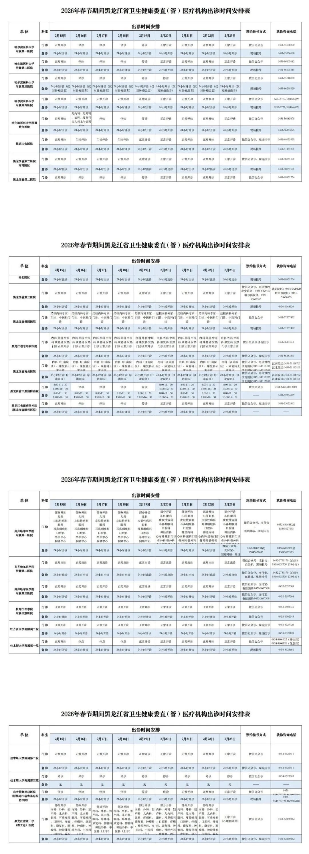 2026年春节期间黑龙江省卫生健康委直(管)医疗机构出诊时间安排表