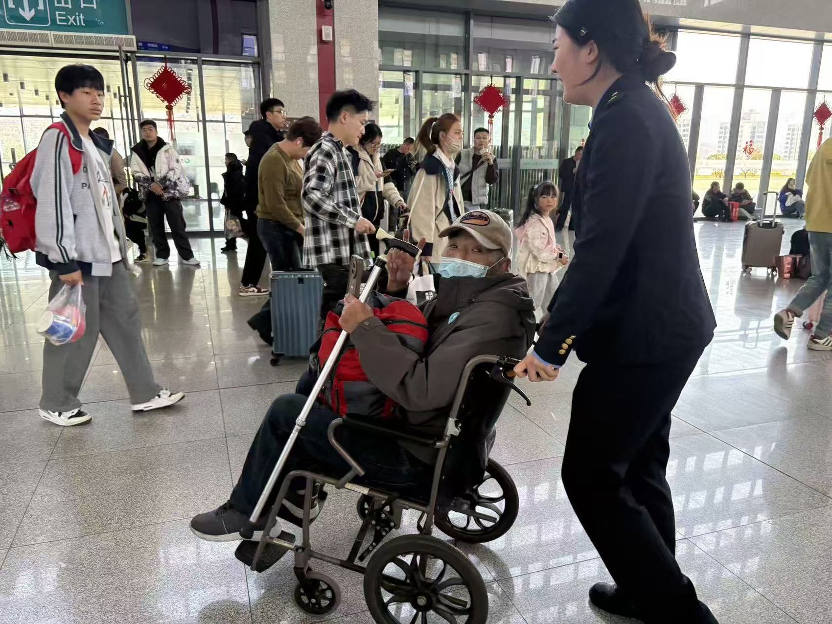 为应对春节客流“大考”,铁路部门精准研判客流走势,全力提升客运运力,攀枝花南站加开多趟列车满足出行需求。春节期间,预计每日加开5对临客列车,开行时间随客调命令动态调整;2月12日至15日,攀枝花南至巴中Y984 次临时列车定点开行,进一步覆盖跨区域出行需求。在提升运力的同时,车站服务同步优化,购票、安检、候车流程持续精简,重点区域增设引导人员与志愿者,为老弱病残孕等重点旅客提供专属服务,让春运旅途更有温度。