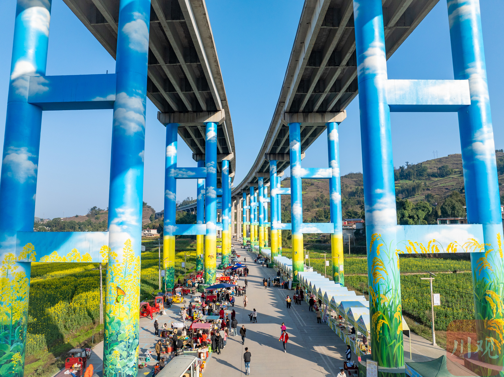 据悉,2026年高县春季赏花系列活动已于2月13日正式启幕,将持续至3月中旬,创新推出六大板块与“花田请春十二事”。游客不仅能徜徉万亩油菜花海,还能参与花田运动会、田野读书会、农耕研学等互动项目;在花田春酒宴上,品尝非遗“川南请春酒”与特色土火锅;更可乘直升机俯瞰云上花海,在实景演出中感受百余项非遗的交融魅力。