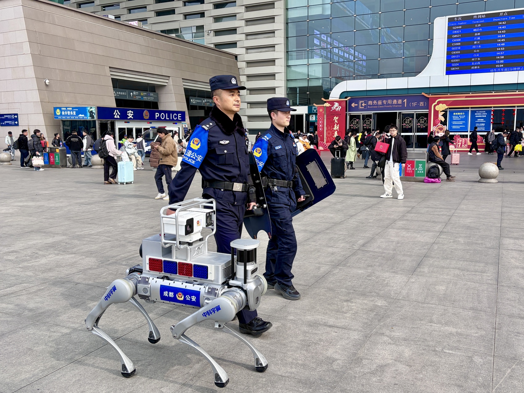 这个春节,一支特殊的“执勤队伍”穿梭于成都街头,在大型商圈、旅游景点、公交地铁等人员密集场所集中上岗。这些“成都造”智能装备与警力深度融合,构建起“空中+地面+单兵+智能服务”的立体防控体系,以硬核科技守护万家灯火。