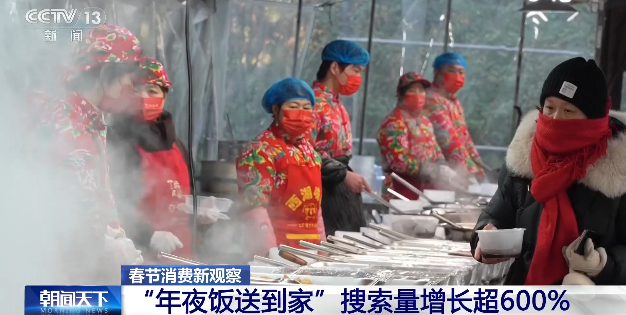 数据显示,相比1月第一周,今年2月第一周“年夜饭送到家”搜索量同比增长超600%。