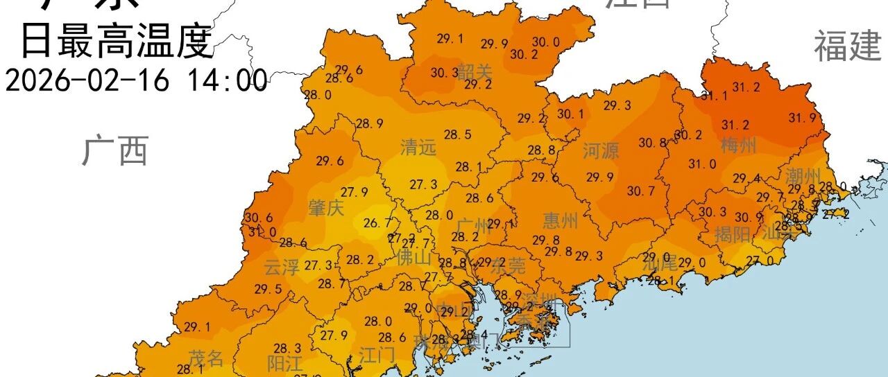 广东最高气温预报图。