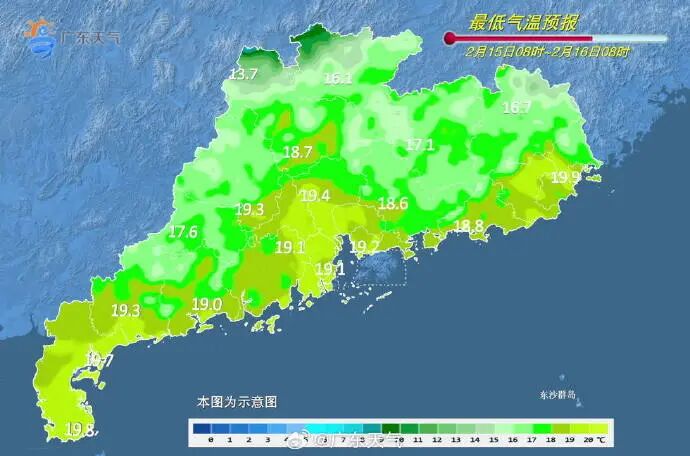 大年初一至初二(17-18日),广东省有分散小雨,粤北气温下降6-8℃,其余市县下降3-5℃,过程最低气温出现在18日或19日早晨:粤北市县7-10℃(高海拔山区3-6℃);