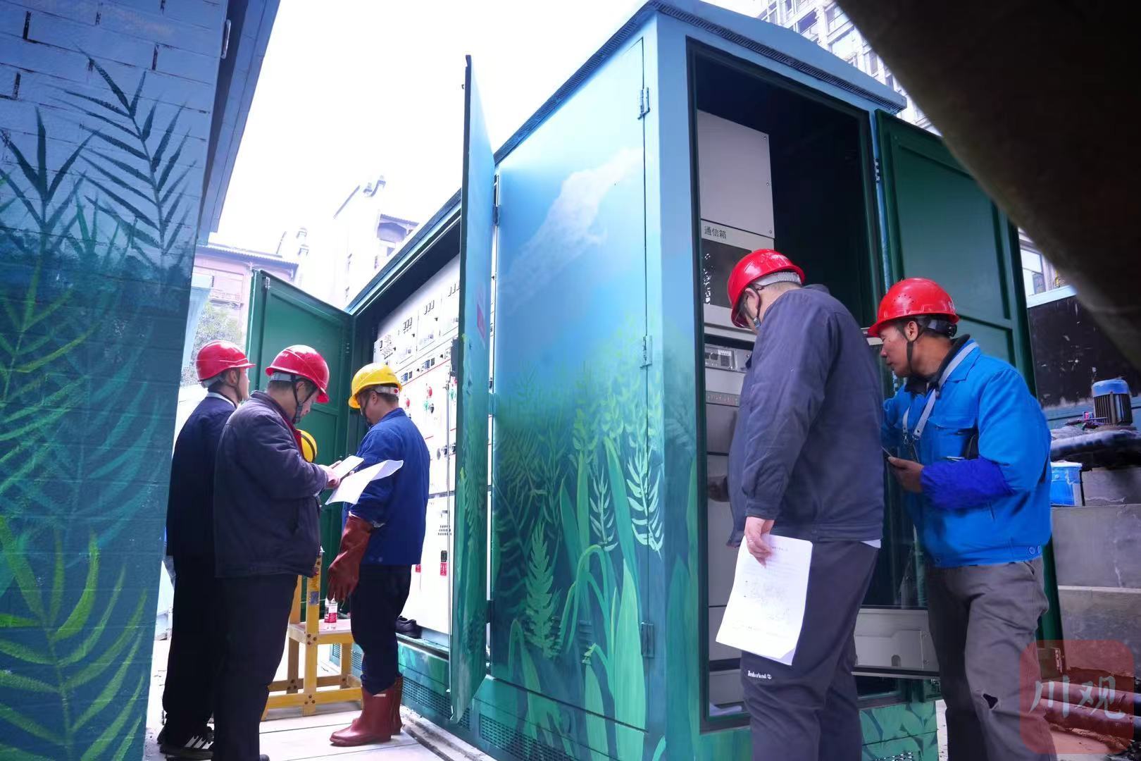 共产党员服务队在“三江之眼”对景观低压配电设施进行检查测试。郑波摄