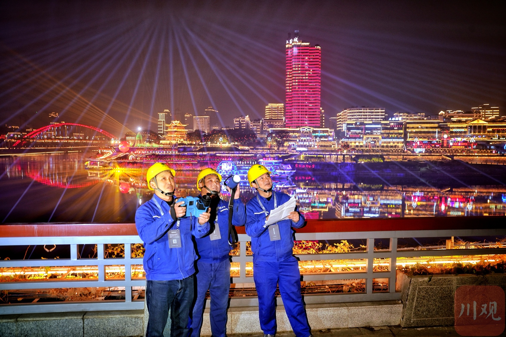 除夕夜,宜宾三江汇流处,灯火如昼。