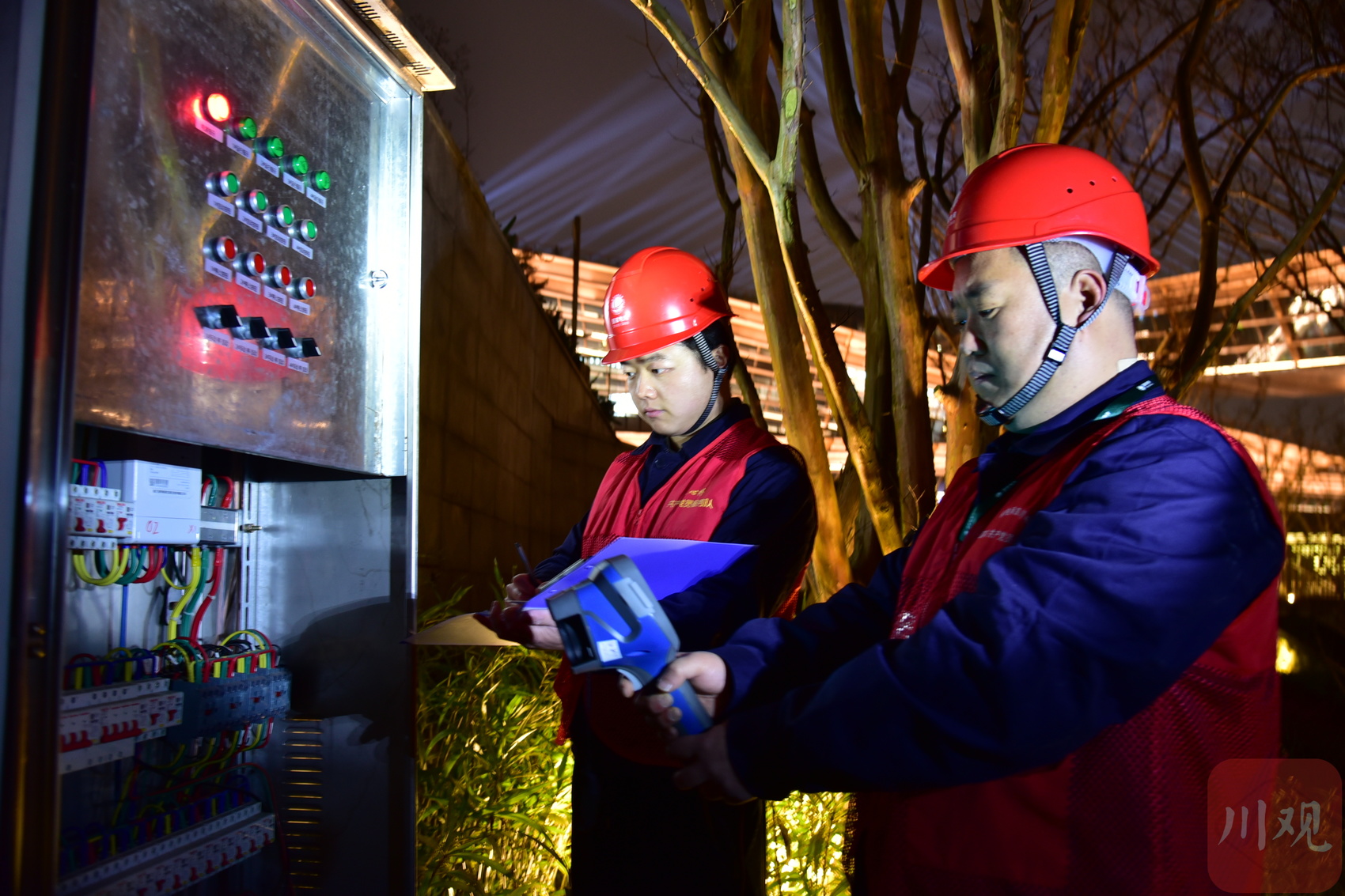 除夕当天,川观新闻走进位于合江门广场的春晚宜宾分会场保电核心区,跟随保电队员体验了一把“最后的冲刺”巡检。