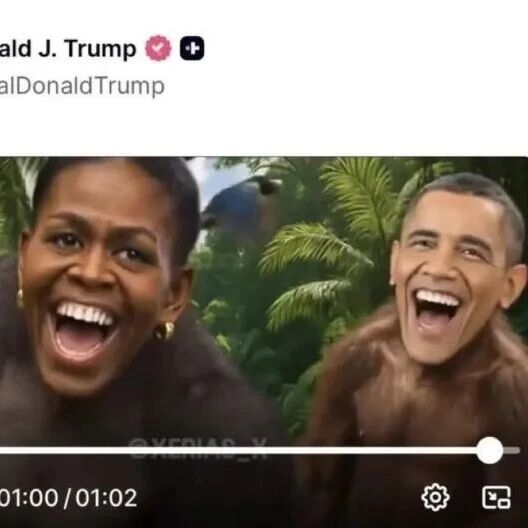 在特朗普“真实社交”账号5日晚发布的一段视频中,结尾处出现两个灵长类动物的画面,脸部被替换为奥巴马及其夫人米歇尔的笑脸。这段涉嫌种族主义的视频引发美国政坛震怒,数名资深共和党籍参议员呼吁删除视频片段,民主党方面更是强烈谴责。白宫直至6日才删除相关视频,此时距发布已过去逾10小时。白宫解释称,上述贴文由一名工作人员“误发”。