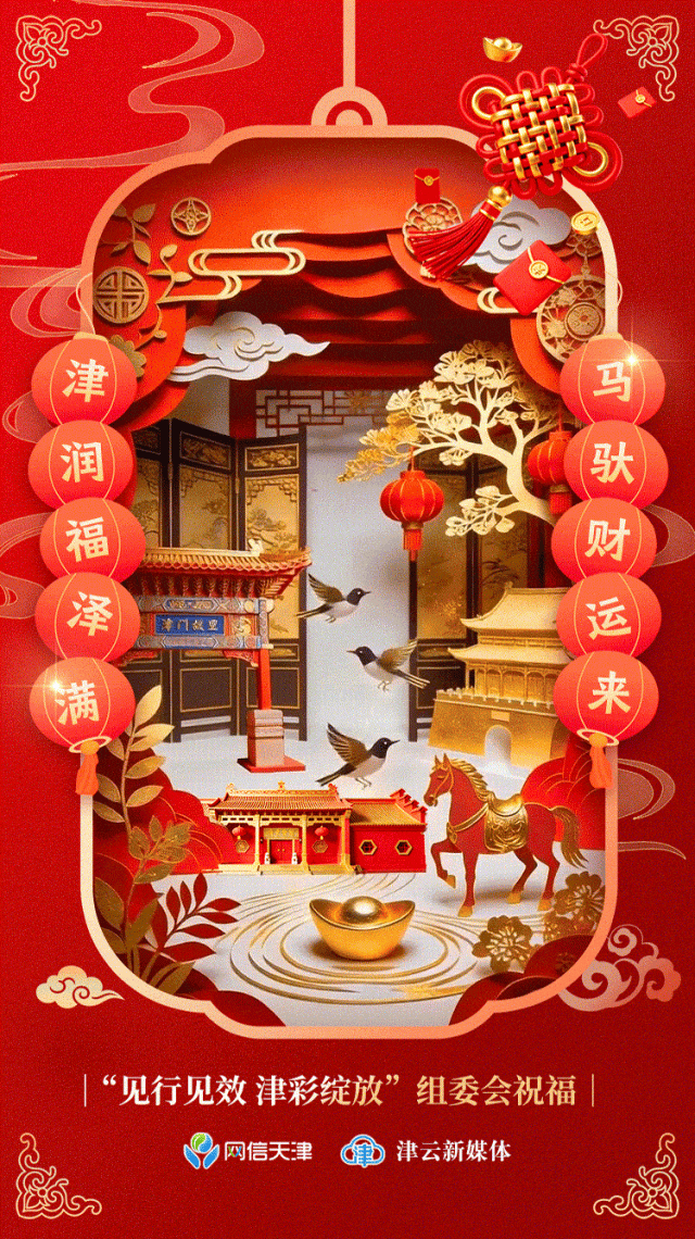 腊月廿八,天津卫的年味儿从掸尘扫屋开始!老天津人说“二十八,把面发”,炸糕、麻花的香气飘满街巷,杨柳青年画贴上墙。骏马踏着津门瑞雪驮来滚滚财运,福泽浸润每寸烟火日常。“见行见效 津彩绽放”组委会与津云新媒体祝您:家宅净洁福气绕,金银满仓笑开颜,马年财运亨通万事顺!