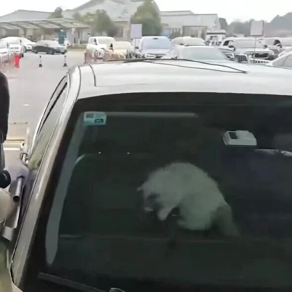 经过一番尝试无果,就在大家准备喊修理厂来帮忙时,猫咪终于在来回走动时误打误撞踩到了解锁键,车门得以打开。