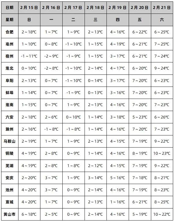 16日(除夕):全省阴天到多云。江淮之间大部分地区和江南有小雨,其中大别山区有雨夹雪或小雪。