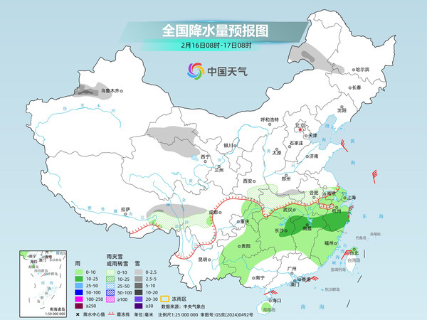 今天(2月16日),寒潮主体继续南下,降温核心区域将在南方,江南局地降温幅度可达10℃,隔天如换季,公众需加强保暖措施,谨防感冒。同时,江淮、江南多地仍有雨雪天气,需关注预警预报信息,外出做好防滑措施。