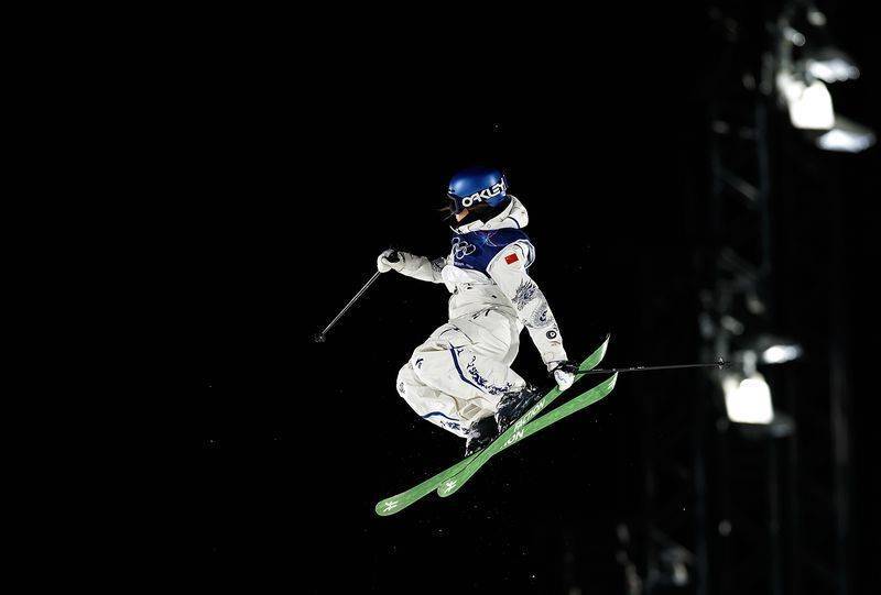 2月14日,中国选手谷爱凌在女子大跳台预赛中(新华社)