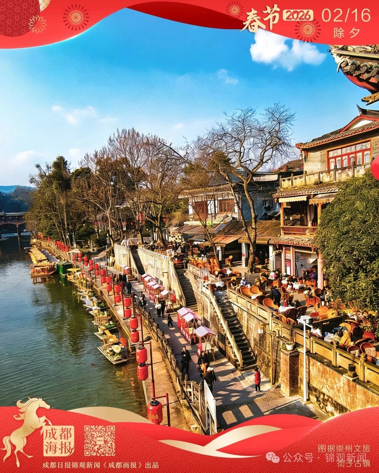 春节来成都,无论是市区,还是周边古镇,年味直接拉满。2月17日—2月20日,双流彭镇老街将开展舞狮巡游、财神巡游、川剧绝活《吐火》表演、长嘴壶茶艺表演等民俗表演,还有老街传统小吃制作展示与体验,让游客在赏民俗的同时,也能吃得过瘾。 2月17日—2月23日,在黄龙溪古镇景区,南狮快闪表演、火龙灯舞、沉浸式互动探秘游戏等超多新春活动等大家来体验。2月16日—3月3日,空港花田举办第二届郁金香节,千亩大地艺术景观搭配花海巡游、音乐演出,是打卡与亲子出游的首选地。崇州以“马上到崇州”为主题推出民俗表演、新春庙会、非遗体验等新春活动,无论全家出游还是朋友结伴,都能解锁专属新春快乐。街子古镇核心景区的新春活动精彩纷呈,不仅有新春庙会、水上年货集、长街宴等经典项目,还能参与唐求葫芦祈福,欣赏湖心岛音乐会、水上火舞秀与万岁山演艺,非遗巡游和青宸马术表演及体验更添乐趣。2月15日—3月3日,白鹿音乐旅游景区开展“福马迎春・乐响白鹿”潮玩季,法式浪漫碰撞中式年味。国漫Cosplay巡游、汉服国风队伍穿梭街巷,新春音乐会与街头Live秀随处可遇;非遗拓印、剪纸体验留住文化温度,夜间灯光秀与灯谜会点亮山谷,更有法式美食与本地小吃满足味蕾。来源 成都文旅 图据崇州文旅、景区制图 曹劲松 严瑾编辑 严心怡审核 周杨云
