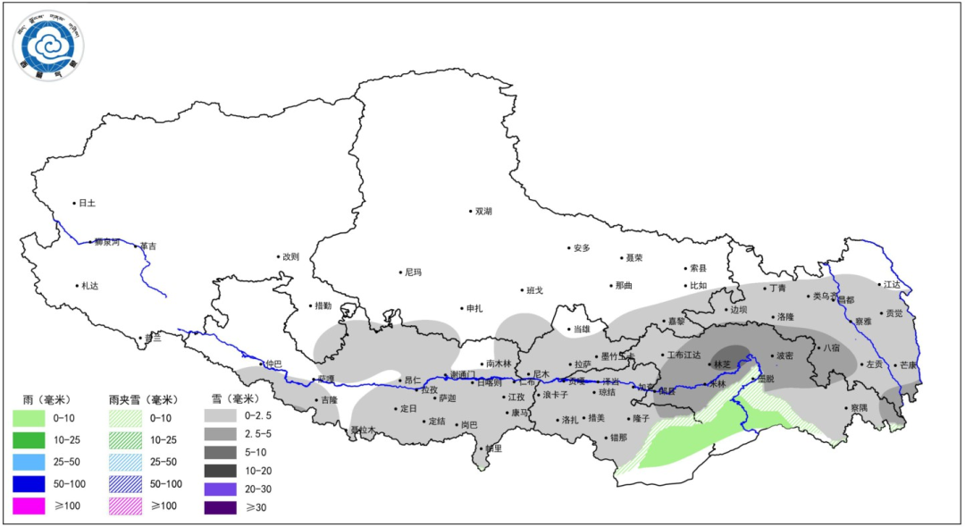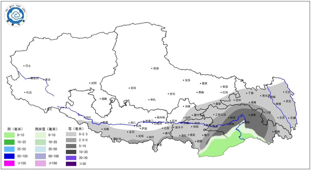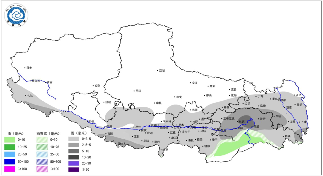 23日至24日,阿里南部、日喀则南部、山南南部和林芝阴天有小到中雪(雨),部分地方有中到大雪,其中墨脱和波密高海拔地方有大到暴雪;那曲中部和东部、昌都北部和南部、山南东部和拉萨北部阴天有小雪(雨);其他地方少云间多云。