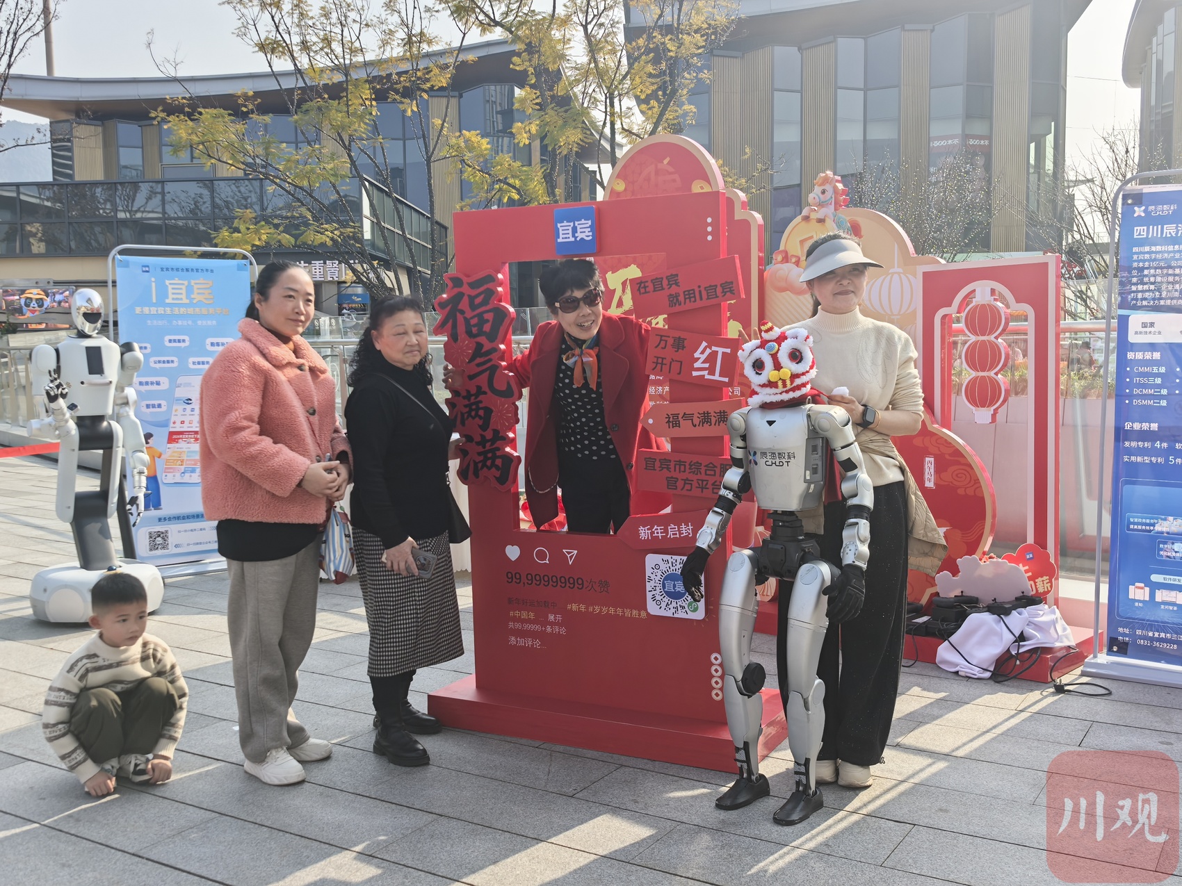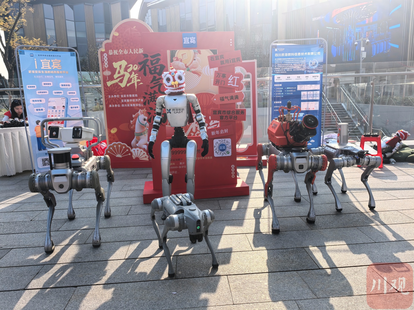 当天,由宜宾市数据局、宜宾数字经济产业发展集团联合主办,宜发展产城公司共同参与的“智趣新春·机甲同行”活动在万象宜宾天地正式启动。登上2026总台春晚的同款宇树科技高性能机器人与仿生机器狗集中亮相,在喜庆祥和的节日氛围中,为市民与游客带来触手可及的沉浸式体验。本次活动将持续至2月23日。