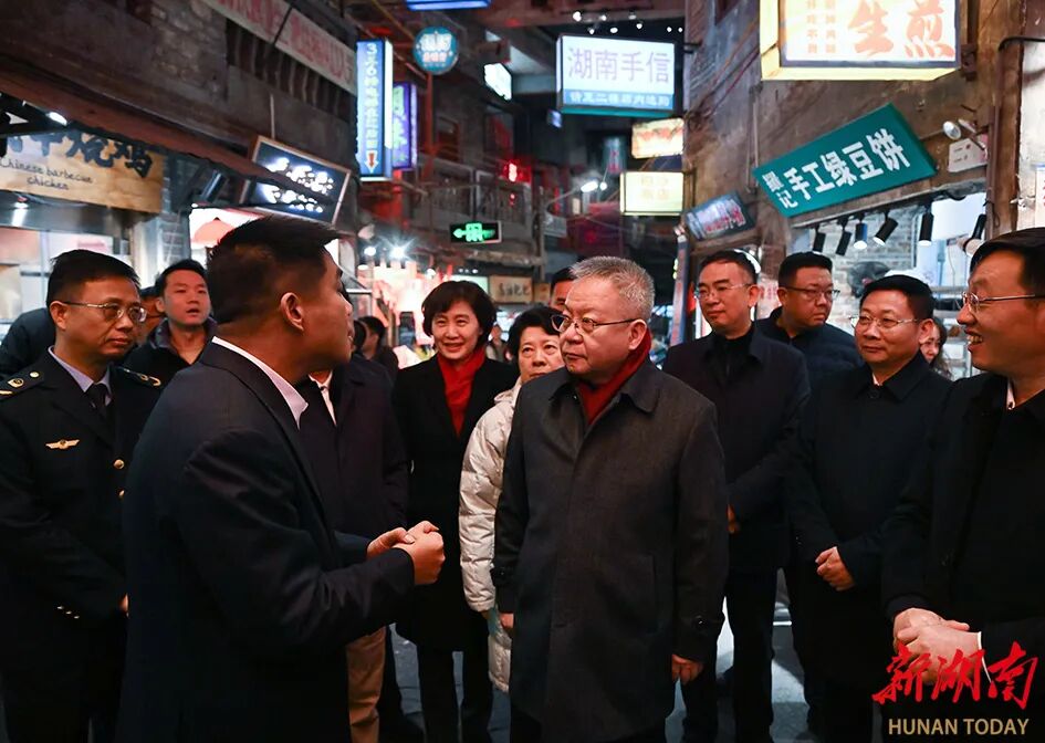 走进文和友,实景还原的长沙老街市上人群熙熙攘攘,浓浓的年味扑面而来。沈晓明边走边看,了解门店建设经营、食材供应、年夜饭销售等情况,指出要不断丰富文旅消费场景,更好满足市民和游客需求,充分激发市场活力。要提高安全意识,强化责任落实,严防各类风险隐患,为市民游客提供舒适放心的消费环境。