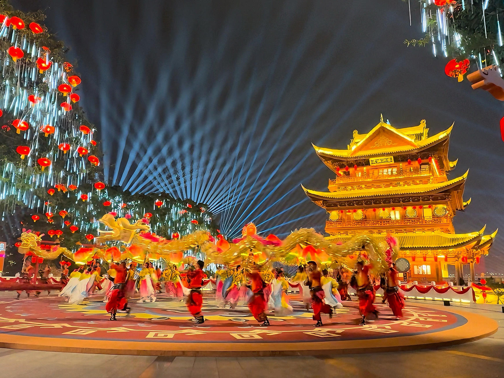2月16日晚,除夕夜,万里长江第一城,三江碧浪映霓虹。