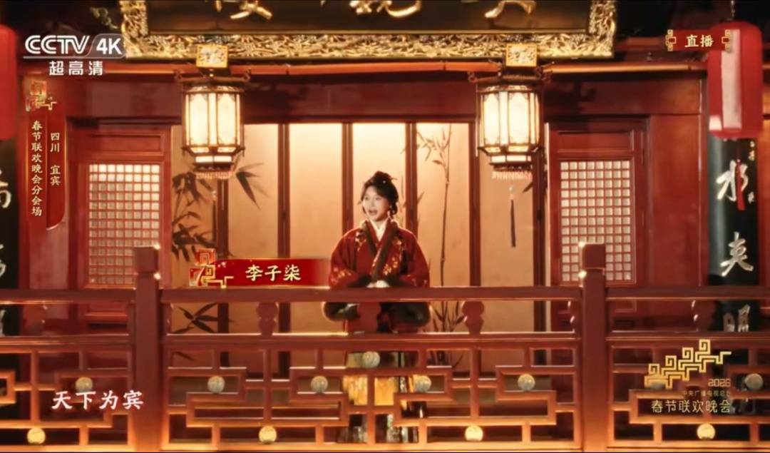 2月16日晚,总台春晚宜宾分会场最先亮相,特色民俗活动“请春酒”贯穿全场。节目中,李子柒化身非遗“请春酒”三台的支客师,沉浸式演绎非遗。
