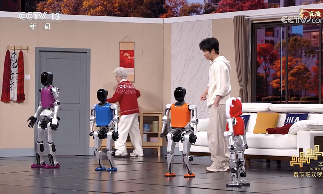 春晚舞台上的家庭场景,松延动力的机器人各施所长,E1伸着脖子探头互动,N2利落完成空翻与侧手翻,“小布米”则全程耍着小调皮。它们此刻或许还成不了操持家务的保姆,却已能提供家人般的陪伴,为生活带来情绪价值。