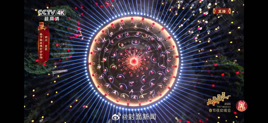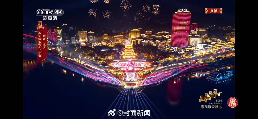 除此之外,今年总台春晚宜宾分会场上,骑着白马的丁真在序篇中闪亮登场,骏马疾驰踏破江风。科技感十足的机器人随着音符舞动,与身穿传统华服的苗族姑娘们交织出奇妙的时空对话。竹编非遗焕发柔光,打铁花在夜空绽放如星雨坠落,千年技艺照亮滚滚三江。两岸楼宇流光溢彩,现代光影与古老文明在此激荡共鸣。
