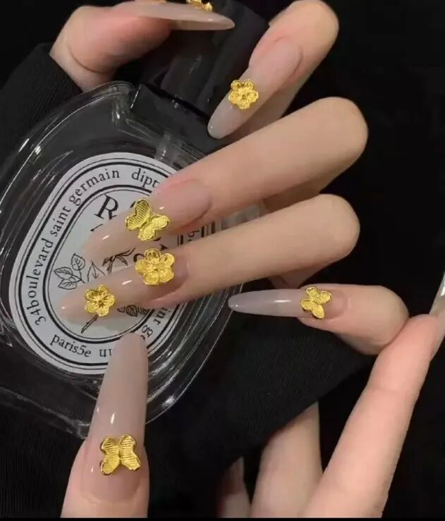 “金饰的简单拆剪我们可以完成,但有些项链、耳环需要去金店专门分拆后,再带来做美甲。”采访中,多名美甲师均告诉记者,顾客带来的金饰多为老庙黄金的金花耳钉、中国黄金的蝴蝶花朵项链等知名品牌的金饰。