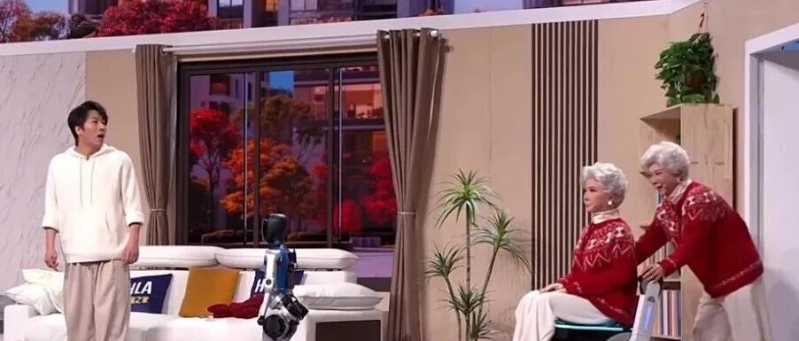 央视新闻介绍,小品《奶奶的最爱》中,真假孙子来了个大PK!机器人会撒娇、讲笑话,情绪价值拉满;还会变魔术、后空翻,技能值爆表!祖孙俩在欢乐互动中,也流露出温情牵挂,这也提醒我们:常回家看看。