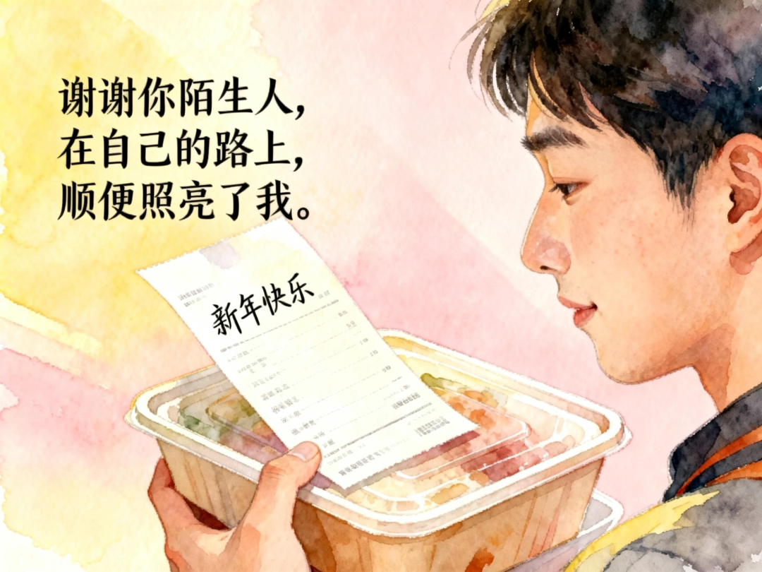 是外卖订单上手写的“新年快乐”,是医院走廊里陌生阿姨递来的一张纸巾,是深夜崩溃时评论区那些从未谋面的晚安。