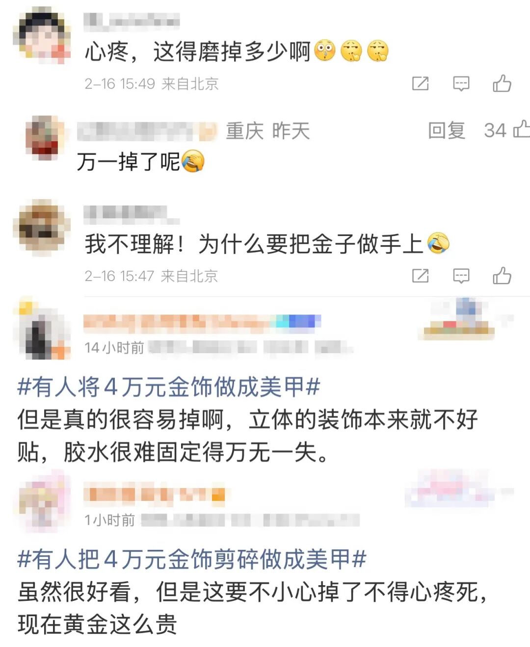 还有网友晒出自己用20g黄金打造的新年美甲,“是寄自己的穿戴甲定做的”。