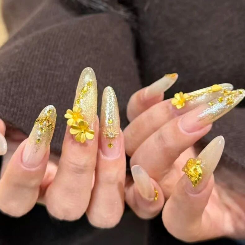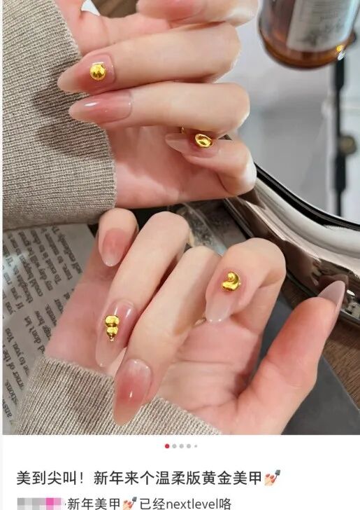 一位在北京拥有十几家美甲门店的店主表示,黄金进入美甲,并不完全是涉及价格或保值的“计算题”,“黄金只是被当成一种设计元素被放进来了”。