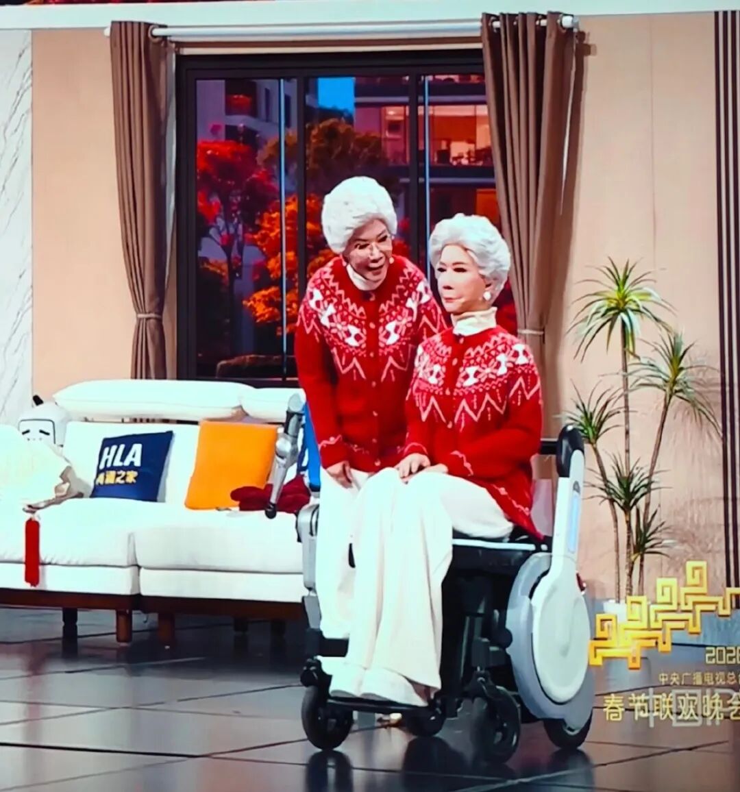 2月14日,@春晚发文:谁能想到,1996年那个“柔道七段”的机器人,30年后会变成《奶奶的最爱》里温柔牵挂的奶奶。