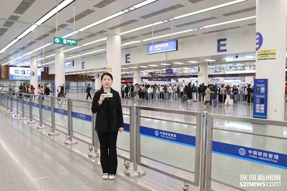 深圳新闻网记者王斯涵在福田口岸报道。(张玲 摄)