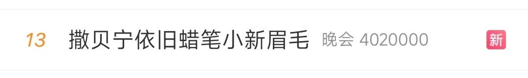 有意思的是,春晚未至,撒贝宁的眉毛又多次上了热搜,在多个采访视频中,不少网友发出疑问弹幕:小撒的眉毛是不是化太浓了?以至于日前,网红博主拉宏桑探访春晚后台时,都忍不住逮着小撒的眉毛不放:“老师,今年你的眉毛又要上热搜。”旁边尼格买提“补刀”:他这叫寿眉,你不要欺负老人家。