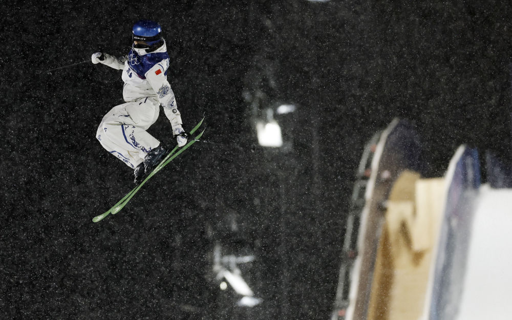 ↑谷爱凌在第一轮比赛中。