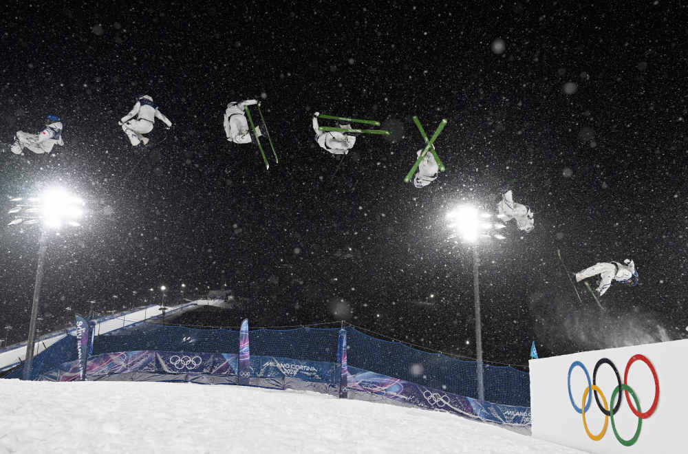 ↑谷爱凌(右)在比赛中(多重曝光)。