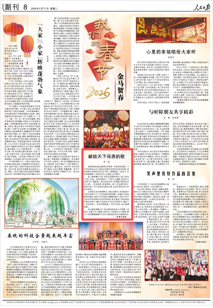 2月17日,演员邓超在《人民日报》副刊发表署名文章《献给天下母亲的歌》。