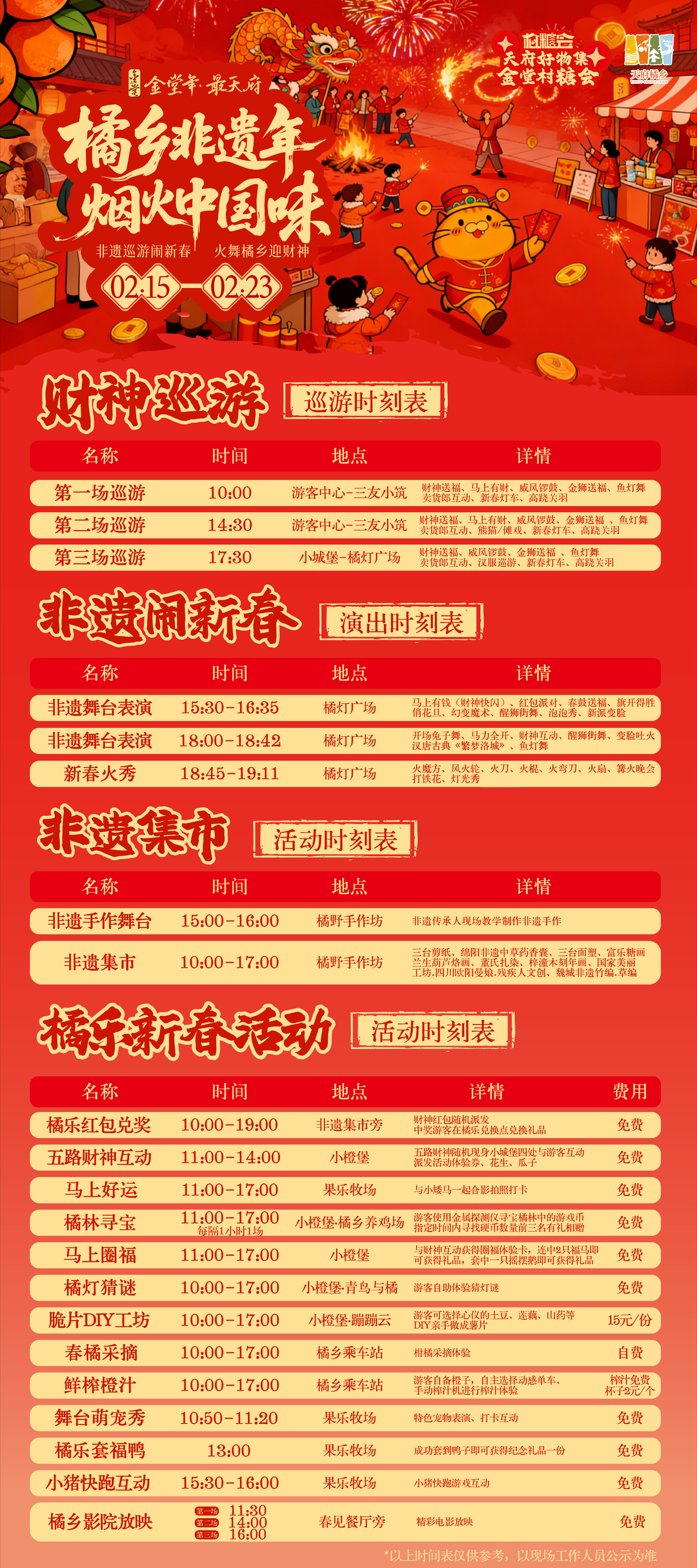 据悉,本次天府橘乡2026非遗体验活动暨“天府好物集・金堂村糖会”三溪专场将持续至2月23日。这场在橘林间绽放的新春盛会,不仅让市民游客感受到浓郁的传统年味与独特的田园风情,更以文化为桥、以活动为媒,进一步擦亮“天府橘乡”农旅融合品牌,带动乡村消费,助力农民增收,为三溪镇探索乡村振兴注入更加强劲的动力。