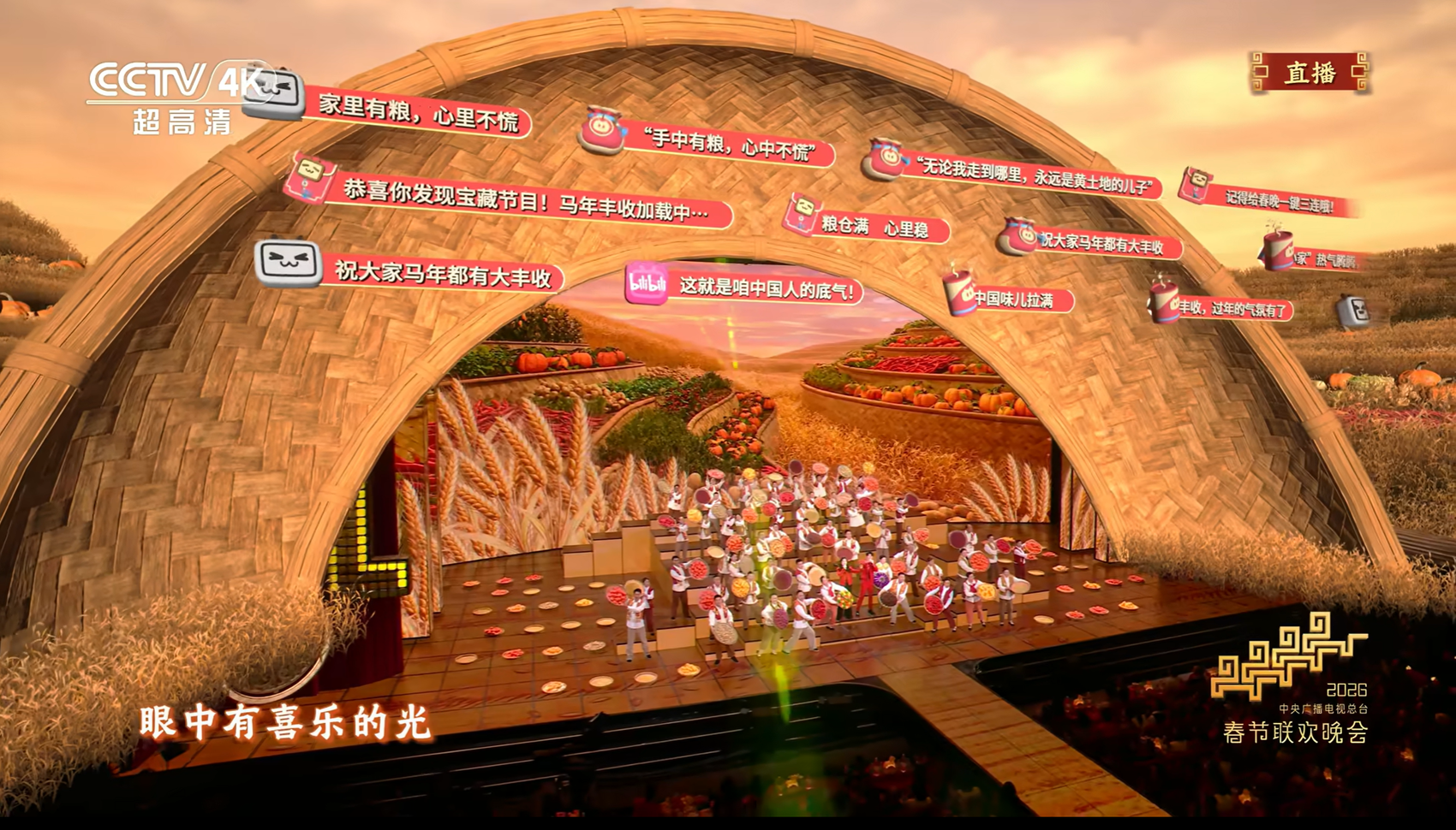 2月16日晚,中央广播电视总台《2026年春节联欢晚会》如约与全国观众见面。来自眉山市歌舞剧院(以下简称“眉歌”)的演员们再次惊艳亮相,先后参演了《马上有奇迹》《来晒秋》《每道光》《难忘今宵》等多个节目。