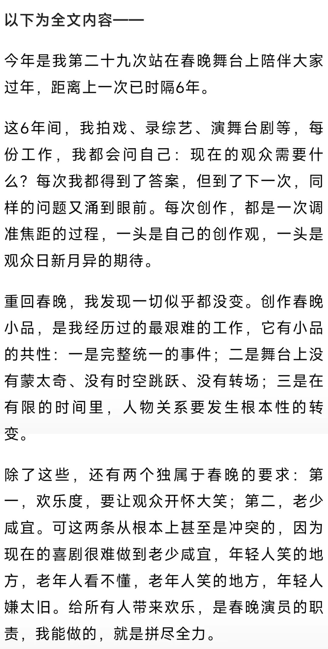 蔡明直言:“创作春晚小品,是我经历过的最艰难的工作。它有小品的共性,又有独属于春晚的要求。给所有人带来欢乐,是春晚演员的职责,我能做的,就是拼尽全力。”