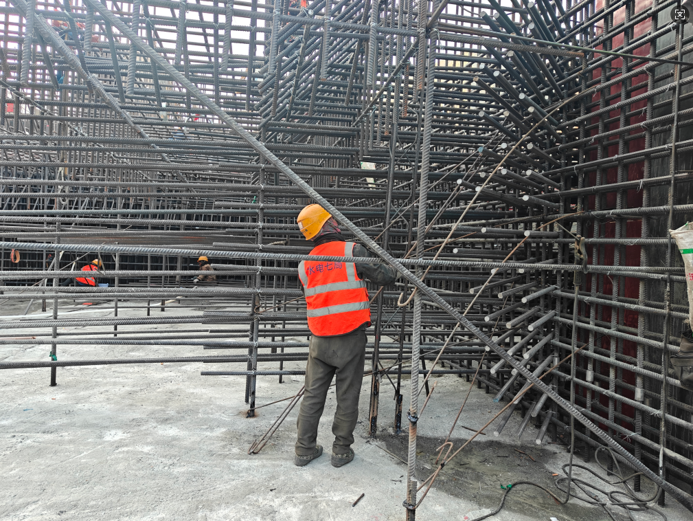 叶巴滩水电站建设现场,工人绑扎钢筋作业