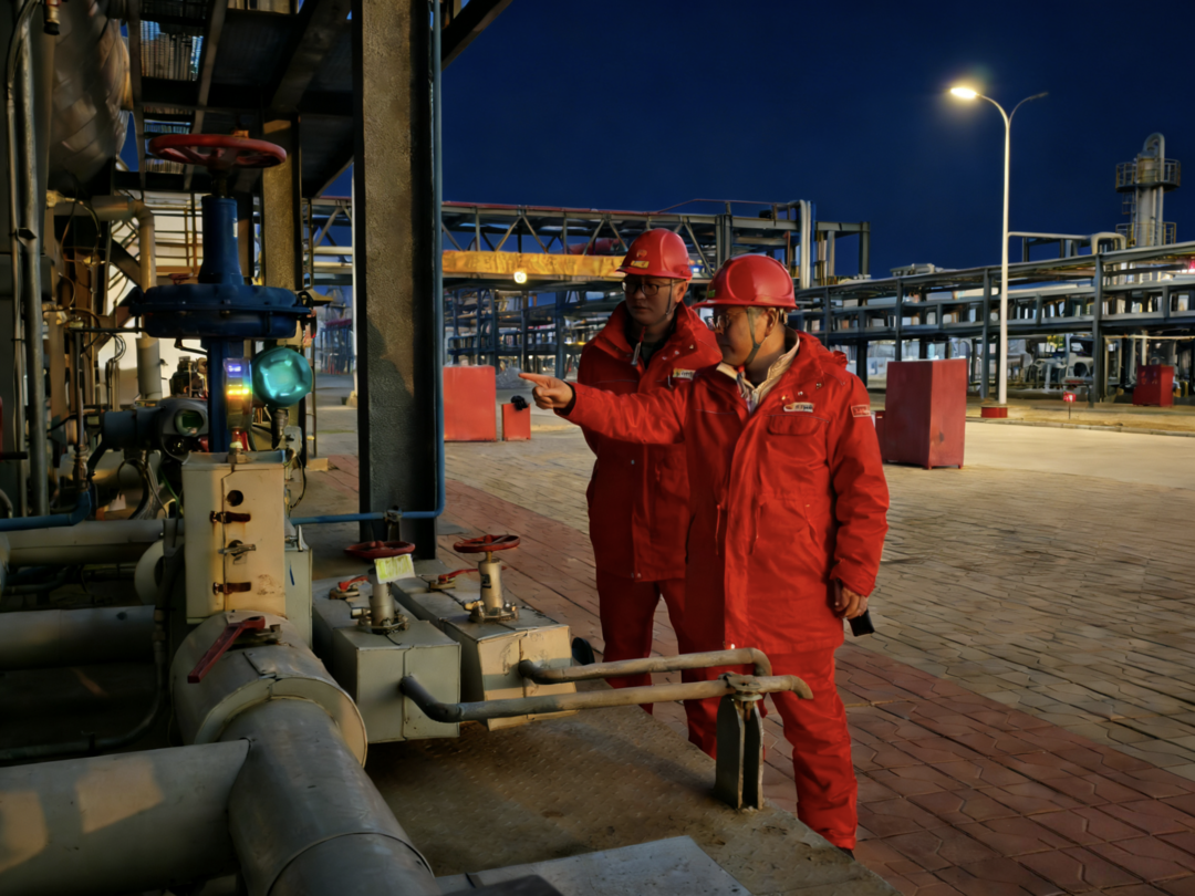 交班结束后,班组人员迅速投入工作。一组人员携带装备赶赴乙二醇装置现场处置,吕剑刚则坐镇中控室,目光紧紧锁定在不停跳动的数据屏幕上。