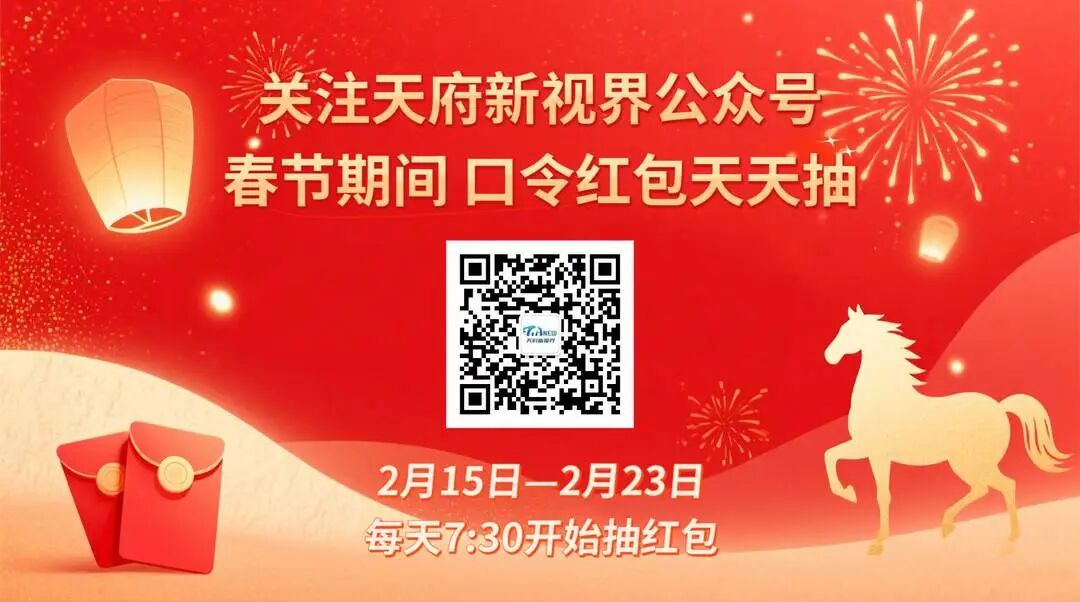 天府新视界公众号“马年口令红包”活动将持续至2月23日(正月初七),每天7:30准时开抢,助您开启新年好运!同时,参与“我心目中的‘锦绣天府·安逸四川’”征集活动,用镜头和文字定格四川年味瞬间,就有机会赢取最高万元现金大奖!