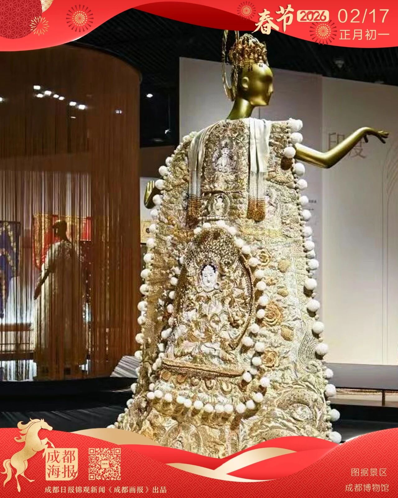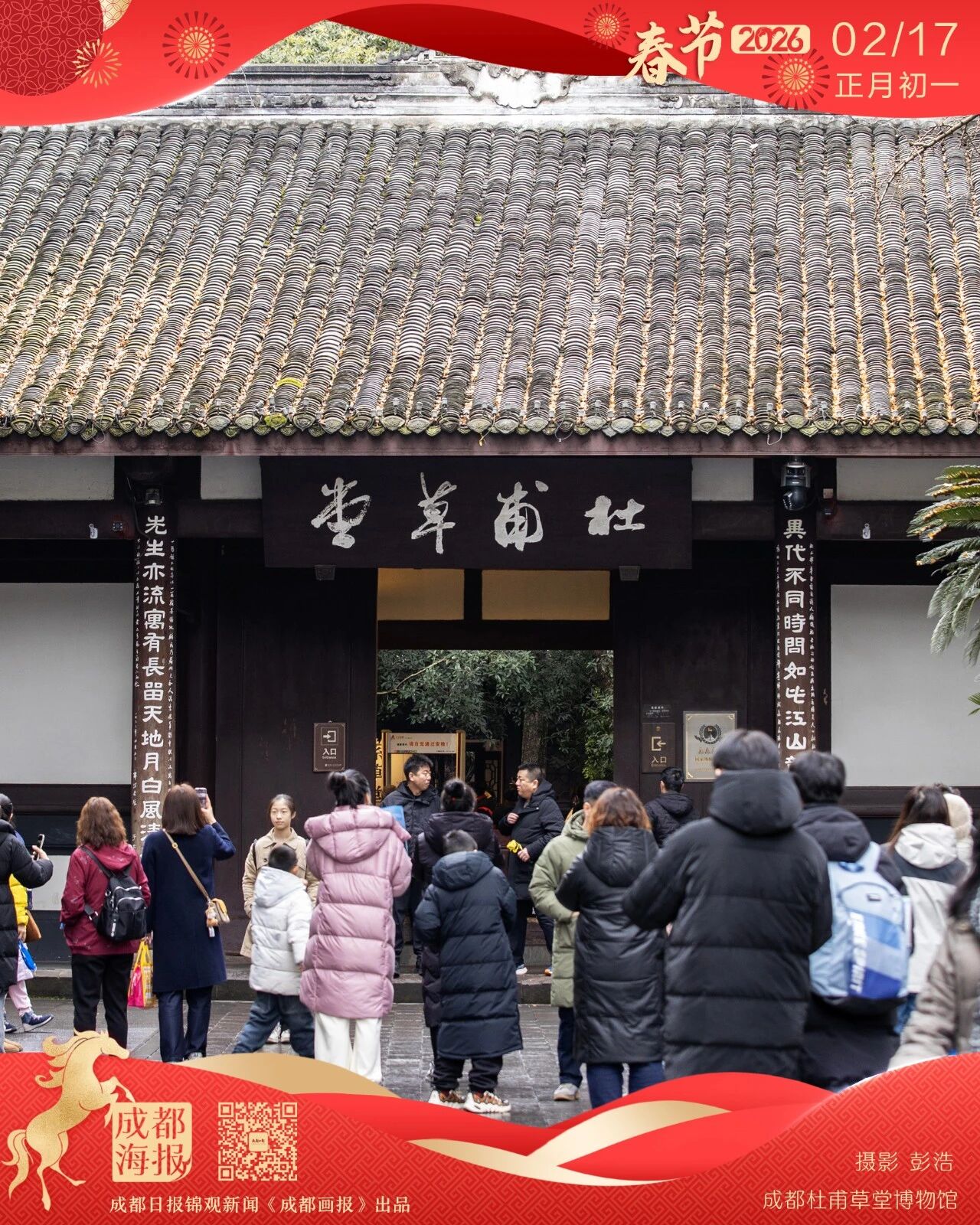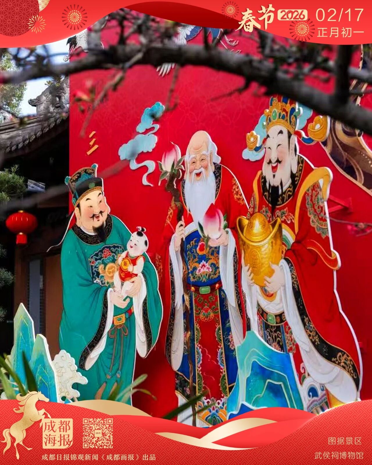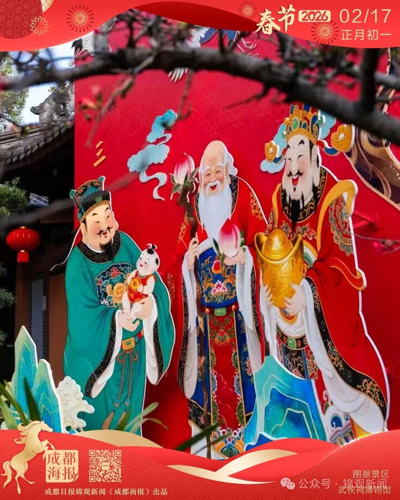 马年新春,成都早已为你备好新春文化大礼。超多文博新展集中上新,让你在沉浸式观展中解锁最有“文化味儿”的新春打开方式。在成都武侯祠博物馆,“瑞映山海 华章同脉——天府与广府的吉韵对话展”正在展出:福禄寿三星笑迎宾客,还有汉代大吉羊云纹瓦当、唐代海兽葡萄纹铜镜、清代粉彩花卉五蝠捧寿瓷碟、画着小猫戏蝴蝶的《富贵耄耊图》卷轴、清代元宵花灯巡游通草画等共计130余件(套)川粤两地吉祥主题精品文物齐聚武侯祠,为马年新春献上一场兼具历史底蕴与节日氛围的文化盛宴。本次展览将持续至5月18日,春节期间还将同步联动武侯祠成都大庙会推出系列特色民俗活动和沉浸式体验活动,更有“小喜神送福”民俗巡游,让观众在逛展之余,深度感受浓郁的春节年味。 在成都杜甫草堂博物馆,“不废江河万古流——杜甫行踪遗迹主题展”让你各方位、全方面了解杜甫。本次展览打破传统人物主题展单一线性叙事模式,以“杜甫行踪线”为主线,“杜甫诗歌线”为暗线,“杜甫文物线”为辅线,3线并行、多点交织,构建“游学壮歌—困守长安—度陇赴蜀—漂泊西南”四大单元,立体展现杜甫坎坷艰辛的人生经历和“由凡入圣”的心路历程。展览还首次对散落在大江南北、与杜甫相关的遗迹影像、碑刻拓片、精品文物和历史文献进行整合汇集,构建起跨越时空的实物证据链条,观众可以“按图索骥”,直观感受其诗风的演变过程,实现“读其诗,行其路”的沉浸式体验。展期持续至2026年5月24日。在成都博物馆,金沙太阳神鸟金饰、金面具将在“金线——从北非到东亚的黄金服饰风尚”特展中重磅亮相。两件国宝级文物上展,将更直观地呈现蜀地早期文明黄金饰品的出现与使用,为观众生动讲述四川地区三千多年前的黄金故事,将展览的叙事时间脉络大大延展。展期持续至2026年3月29日。综合 成都文旅 图据景区制图 曹劲松 严瑾编辑 王斌审核 周杨云